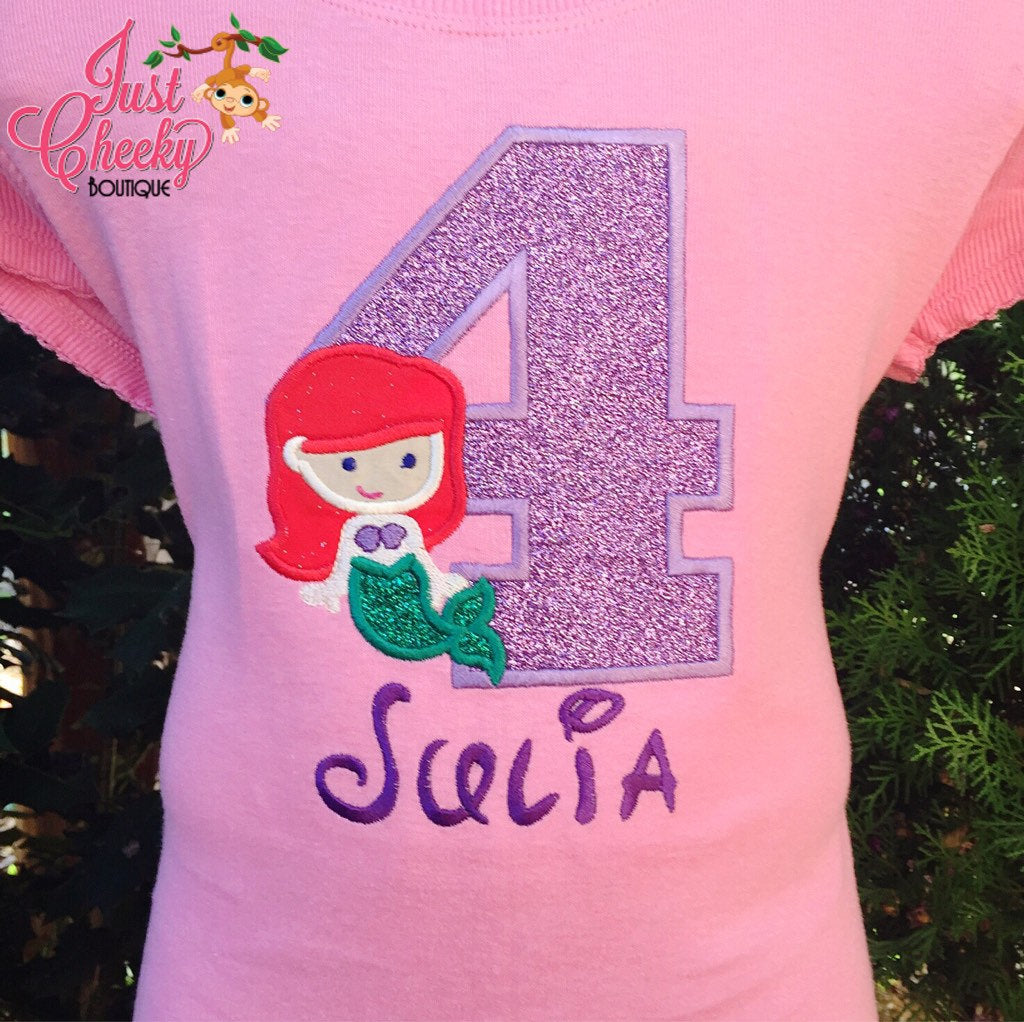 This listing is for a custom Ariel inspired mermaid cutie embroidered shirt.