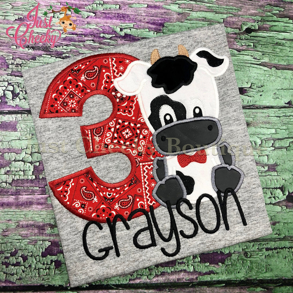 Cow Farm Animal Birthday Shirt- Kids Farm Embroidered Shirt -Girls Farm Shirt -Boys Farm Shirt- Park Shirt - Cow Appreciation - Chick Fil A