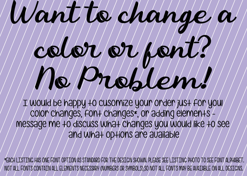Some color requests can be accommodated so please message us to discuss your custom colors!