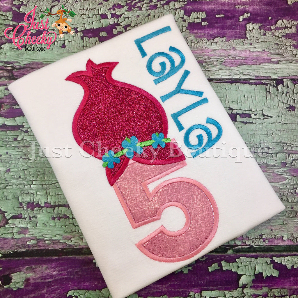 Trolls Inspired Embroidered Shirt - Poppy - Branch - Bergen - Hair Up - Trolls Birthday Shirt - Poppy Birthday Shirt - Trolls Party